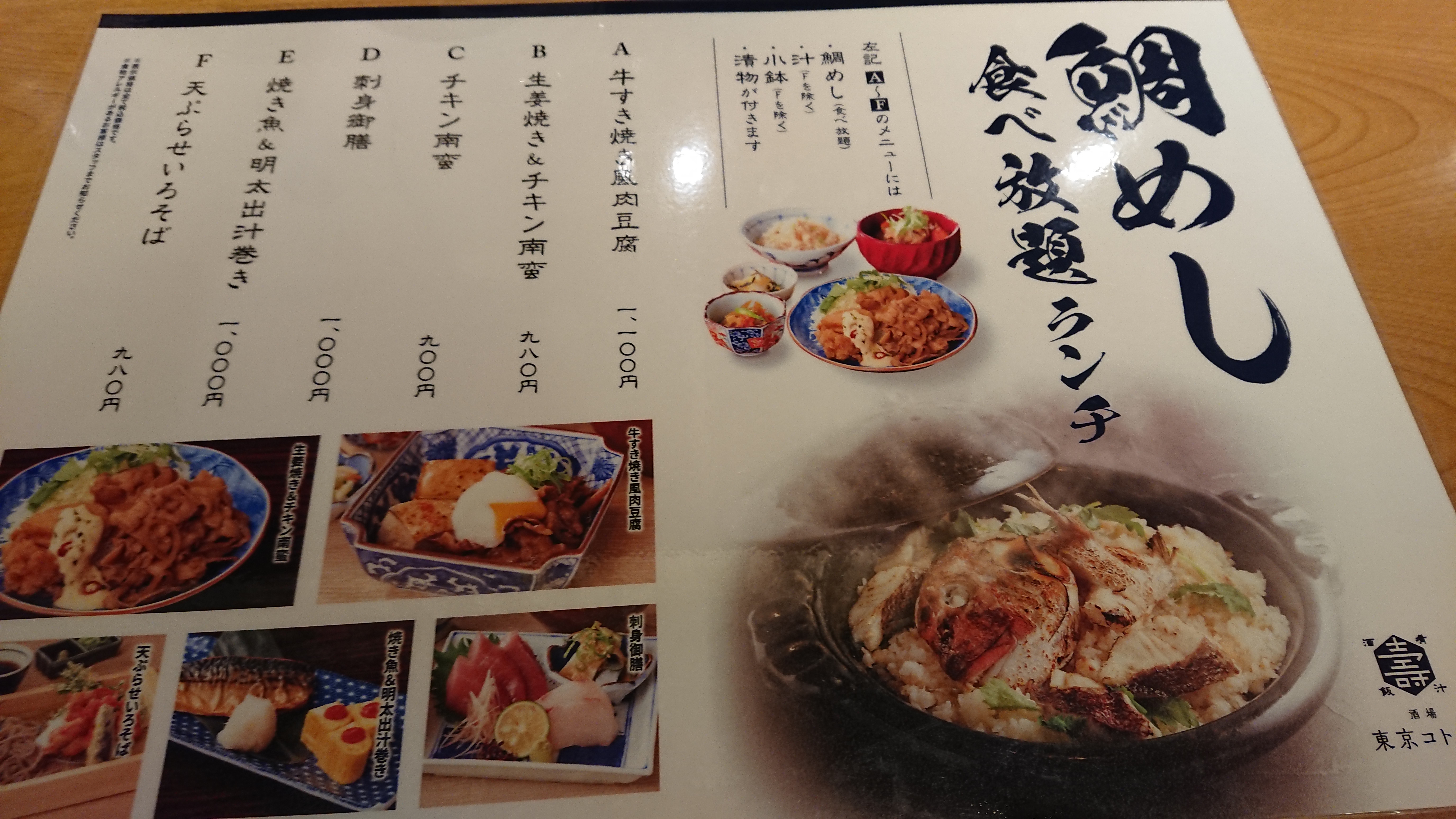 初回ご紹介は、サントリーグループのダイナックです。いろいろなレストランを経営されてますが、今回は東京コトブキ御茶ノ水店です。ランチは鯛めし食べ放題が良いですね。